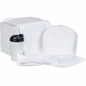 - Материал: шапка, шарф, варежки - полиэстер 100%; флис; термостакан - нержавеющая сталь, полипропилен