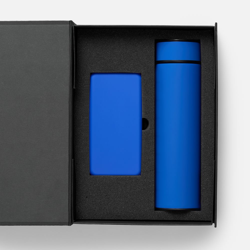 - Материал: аккумулятор - пластик; покрытие софт-тач; термос - нержавеющая сталь, 304; покрытие софт-тач; коробка - переплетный картон