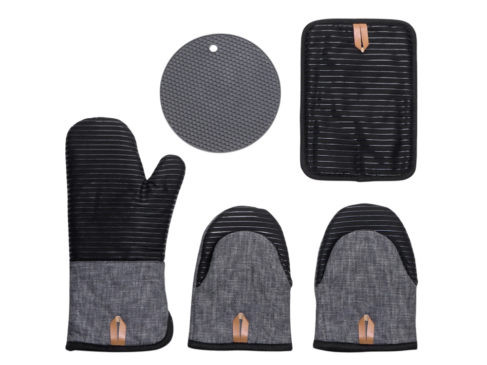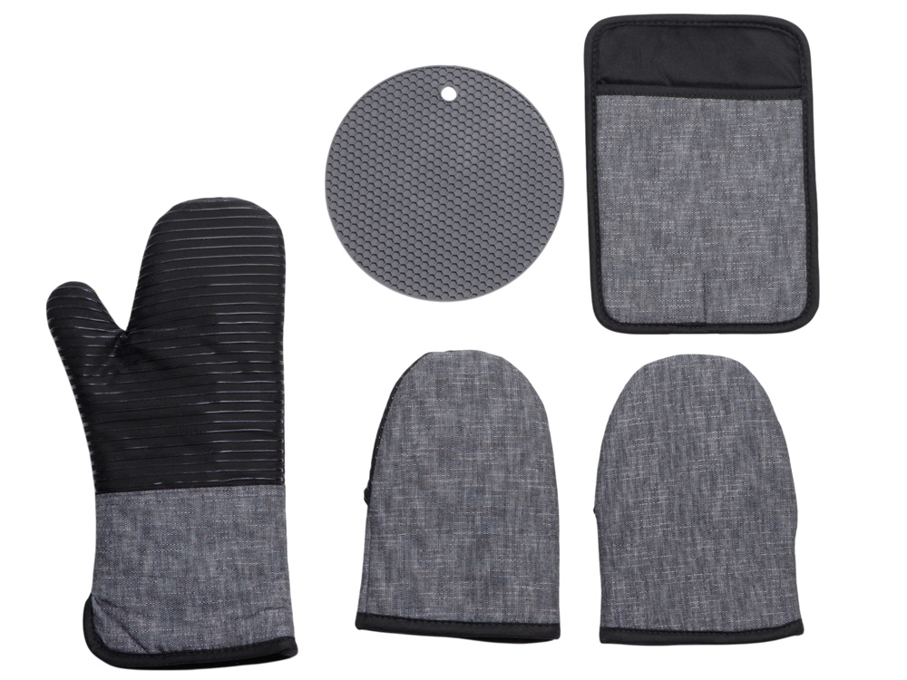 - Комплектность - прихватка рукавица, прихватка мини - 2шт, прихватка держатель для блюд, силиконовая подставка круглая