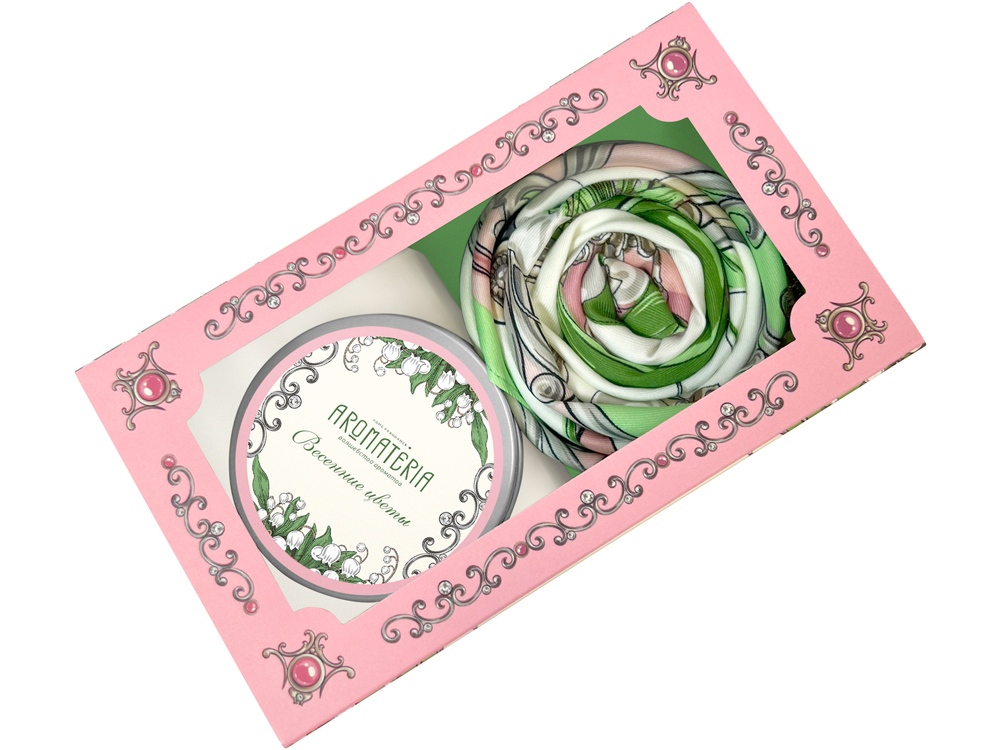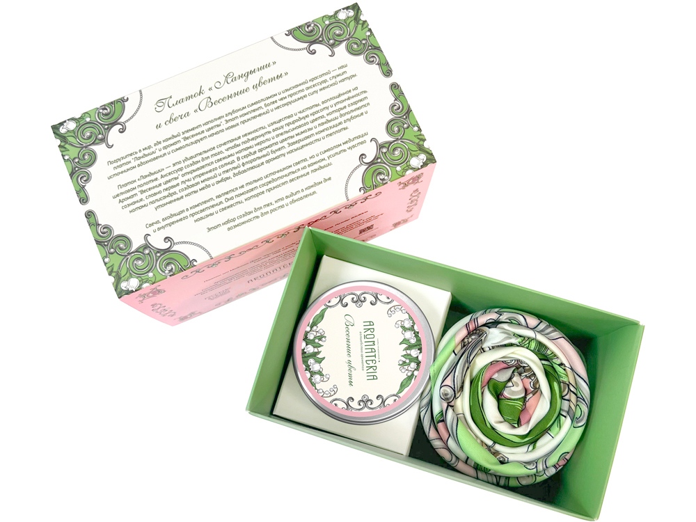Набор: платок «Ландыши» и свеча «Весенние цветы»