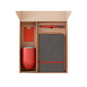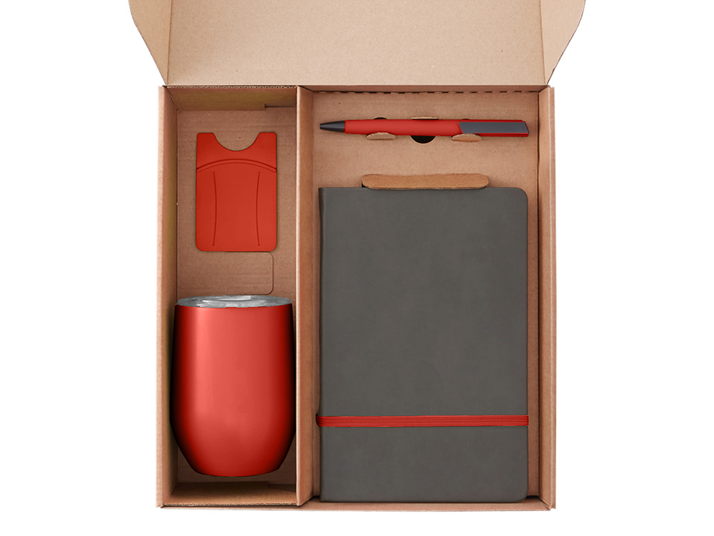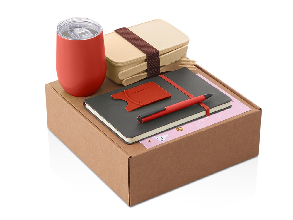 Набор с термокружкой, блокнотом, ручкой и ланчбоксом "Refreshment", красный