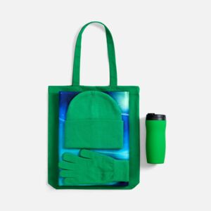Набор «Ваше сиятельство» — это выражение заботы и нетривиальный комплимент в одном шопере! В нем тонко переплетены дух современного города и очарование северной сказки. Его элементы лаконичны и функциональны, а главная изюминка — живописный плед с изображением северного сияния — добавляет ноту настоящего чуда.