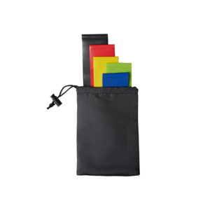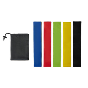 Набор спортивных резинок Crane. Набор из пяти резинок высокой плотности с большим сопротивлением (60х5 см) различной силы. Каждая из резинок предоставляет определенную растяжку для работы над мышцами, увеличения силы и тонуса тела. Широко используется во всех видах упражнений. В комплекте чехол, который можно использовать для нанесения. Нейлон и латекс. Силовая нагрузка фитнес-резинок отличается в зависимости от цвета: Зеленый- 4,5 кг. Синий- 5,4 кг. Желтый- 7,2 кг. Красный- 8,2 кг. Черный- 9,1 кг.