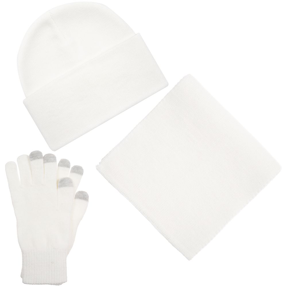 В комплект входят двухслойная шапка с регулируемым отворотом и легкий однослойный шарф из мягкой акриловой пряжи, сохраняющие тепло и защищающие от ветра, а также эргономичные перчатки со специальными токопроводящими волокнами на кончиках пальцев, в которых можно свободно пользоваться смартфоном даже в холодную погоду. Универсальная цветовая гамма и лаконичный дизайн делают набор органичным дополнением к любой верхней одежде.