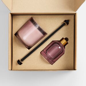 - Материал: флакон, подсвечник - стекло, палочки из файбера; свеча - воск; коробка - микрогофрокартон, плотность 385 г/м²