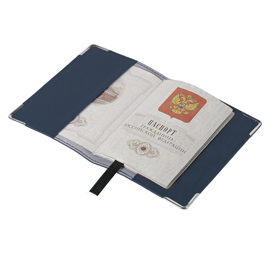 Стильный и практичный аксессуарОбложка для паспорта, цвет темно-синийPU, металлические защитные уголки, ляссеразмер 13.7х20.4 смУпаковка- пластиковый пакет