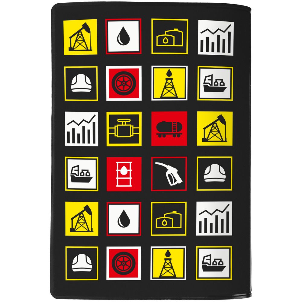 Прочный непромокаемый материал аксессуара сохранит главный документ сотрудника, а минималистичный дизайн создаст особую эстетику. В каждой части общего рисунка изображены главные символы нефтегазовой промышленности.