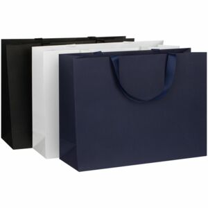 Пакет на лентах из бумаги Snow White Kraft плотностью 200 г/м².Выдерживает вес до 3 кг.