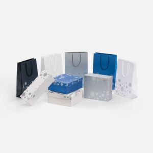 Пакет из бумаги Galaxy Metallic (TPG) плотностью 120 г/м² с тиснением серебристой фольгой.Выдерживает вес до 2 кг.