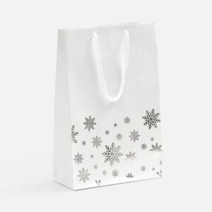 Пакет из бумаги Galaxy Metallic (TPG) плотностью 120 г/м² с тиснением серебристой фольгой.Выдерживает вес до 2 кг.