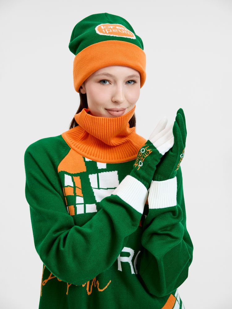 Модель: цельновязанные бесшовные перчатки с эластичной манжетой и жаккардовым узором в 2-3 цвета. Манжета может быть полосатой (горизонтальные полосы 1-2 цветов, без узора и логотипа).