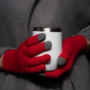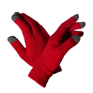 Перчатки из теплого и мягкого акрила с сенсорными наконечниками.Основной цвет: красный. Цвет сенсорных вставок: серый меланж.