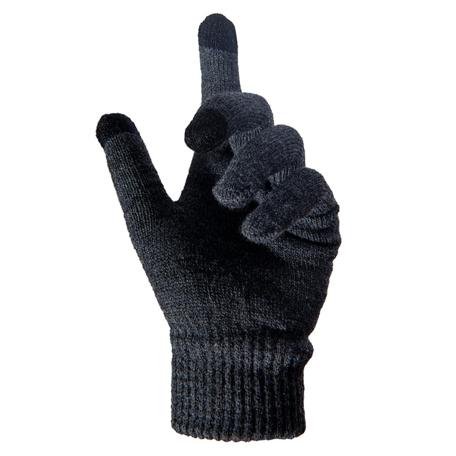 Перчатки из теплого и мягкого акрила с сенсорными наконечниками. Основной цвет: темно-серый меланж. Цвет сенсорных вставок: черный.