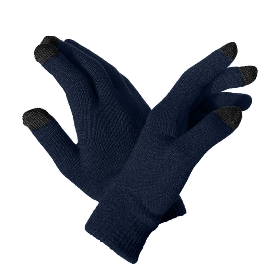 Перчатки из теплого и мягкого акрила с сенсорными пальцами. Основный цвет: темно-синий. Цвет сенсорных вставок: черный.
