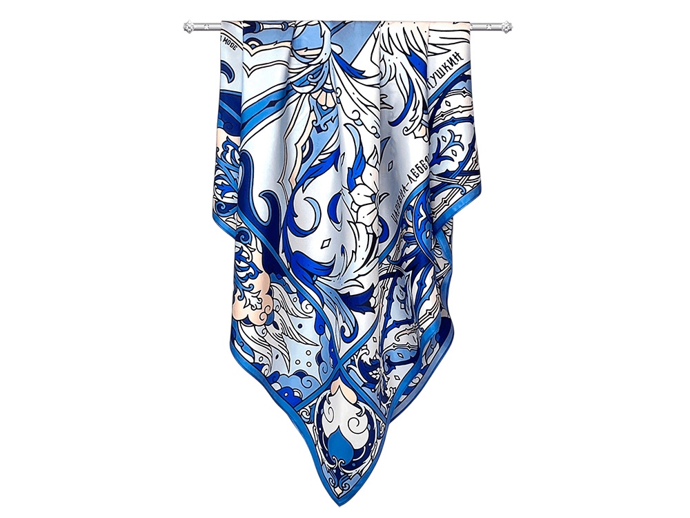 Платок «Царевна-Лебедь» 100% шелк, синий