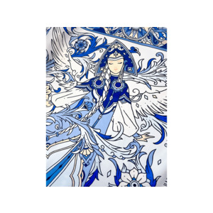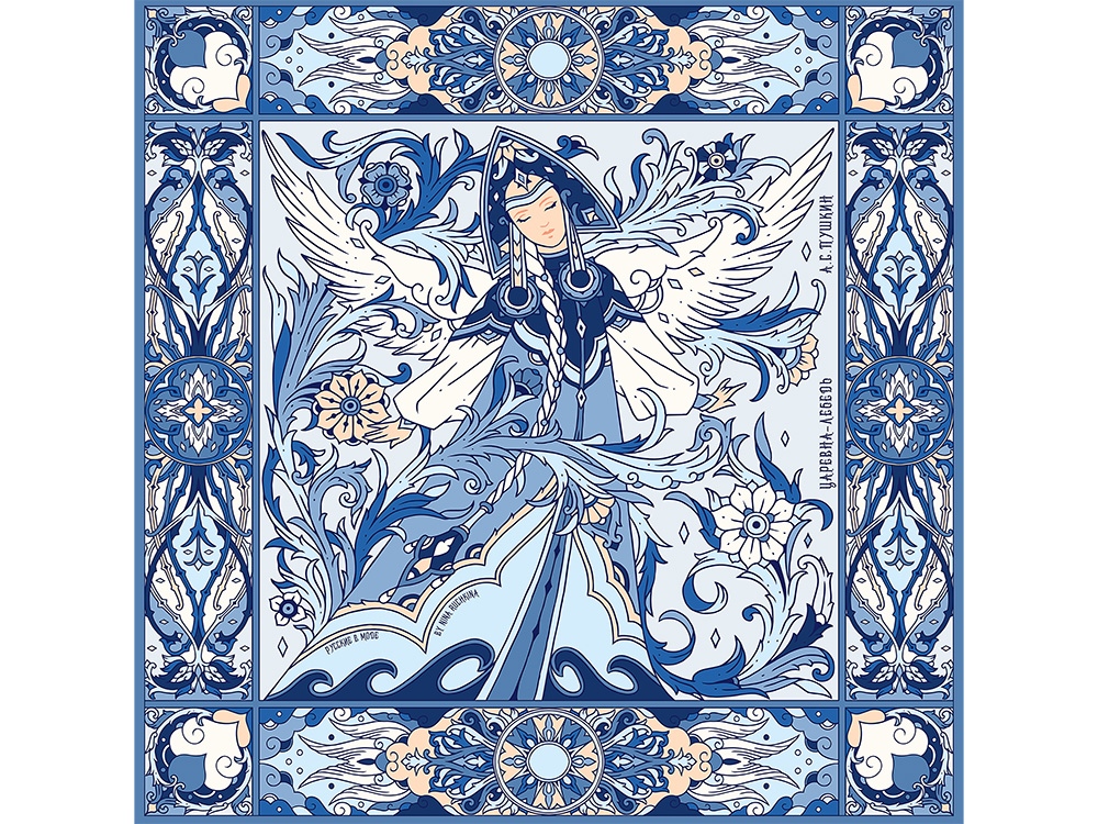 Дизайнерский платок «Царевна Лебедь» от Нины Ручкиной стал воплощением сказочного персонажа, прославленного великим и талантливым романтиком и поэтом — А. С. Пушкиным. Именно он впервые подарил нам образцы художественной русской эстетики, исходящей из самой глубины русской души. В центре авторского принта — удивительной красоты женщина с белоснежными крыльями, наделенная магическими способностями и житейской мудростью. Оригинальное сочетание тонов, цветочных орнаментов и русского колорита делают аксессуар нежным и самобытным. Платок с прекрасной Царевной Лебедь подойдет изящным и романтичным натурам, предпочитающим классику и традиционный русский стиль. Он станет деликатным дополнением как повседневного, так и вечернего образа утонченной леди. Над дизайном работали художники: Нина Ручкина, Мила Лосенко.