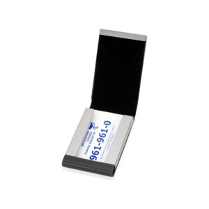 Визитница из кожзаменителя и металлический брелок прямоугольной формы - идеальный тандем из бизнес-атрибутов, которые всегда дополнят образ делового человека и принесут ему пользу. Набор можно персонализировать методом гравировки.