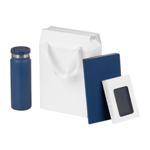 Универсальный пакет – коробка небольшого размера, тем не менее, вмещает различные вариации подарочных наборов. Выполнен в праздничном белом цвете с ручками из репсовой ленты. Станет хорошей упаковкой для подарочного набора.