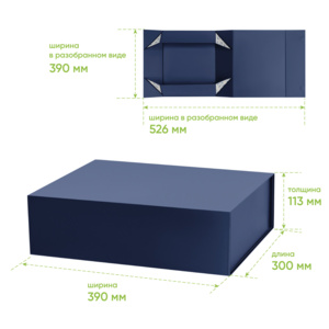 Идеальные размеры для оформления подарочных и брендовых наборов. Простая и надежная сборка без лишних усилий. В сложенном виде коробка занимает минимум места, что значительно сокращает расходы на хранение и логистику.