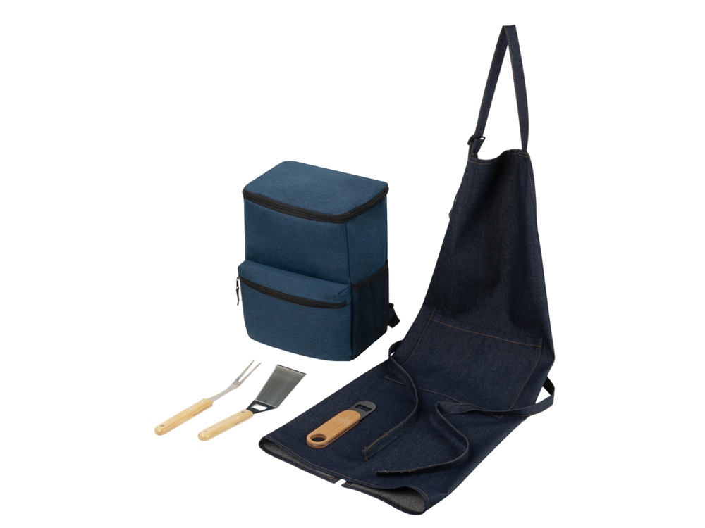 Компактный рюкзак-холодильник имеет несколько отделений, основное изотермическое отделение вмещает до 20 банок объёмом 0,33 л. Приборы выполнены из нержавеющей стали, ручки — из дерева: не только не дадут обжечь руки при готовке, но и могут стать дополнительным полем для нанесения. Открывалка для бутылок поможет быстро откупорить бутылки и насладиться вкусом любимого напитка. Плотный джинсовый фартук имеет большой вместительный карман. - лопатка с дополнительной открывалкой для бутылок; - лямки рюкзака регулируются для подгонки под практически любую фигуру; - стильный и лаконичный дизайн - несколько вариантов брендирования - идеально для барбекю и кулинарных мастер-классов.
