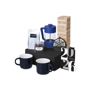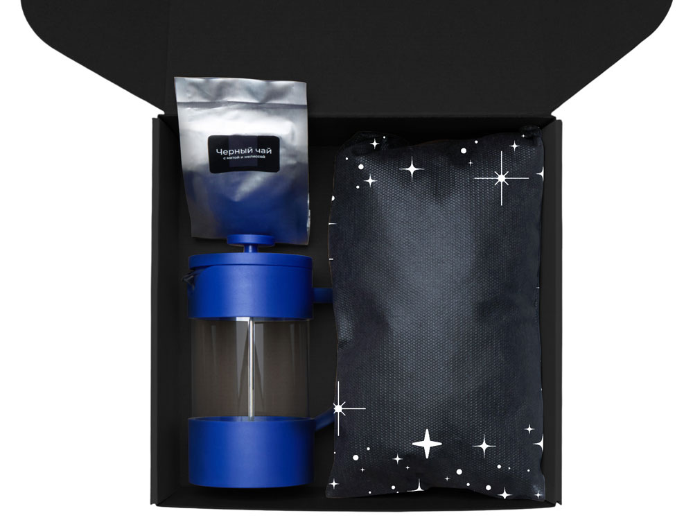 Подарочный набор c френчпрессом, кружками и чаем, синий