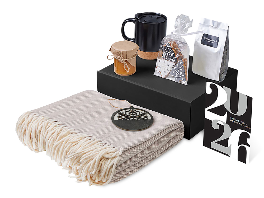 Подарочный набор c пледом, кружкой и вареньем, черный