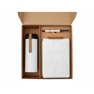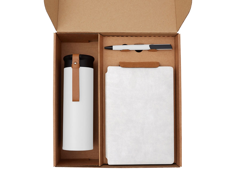 - Материал товара - термос - нержавеющая сталь, soft-touch, блокнот - термо PU с зернистой структурой, ручка - пластик с покрытием soft-touch, стикеры - смола