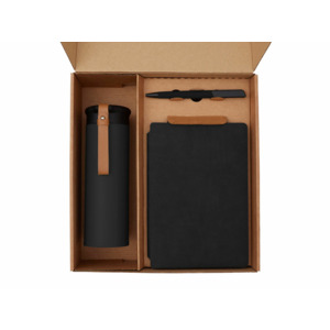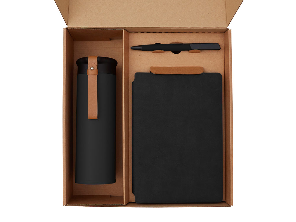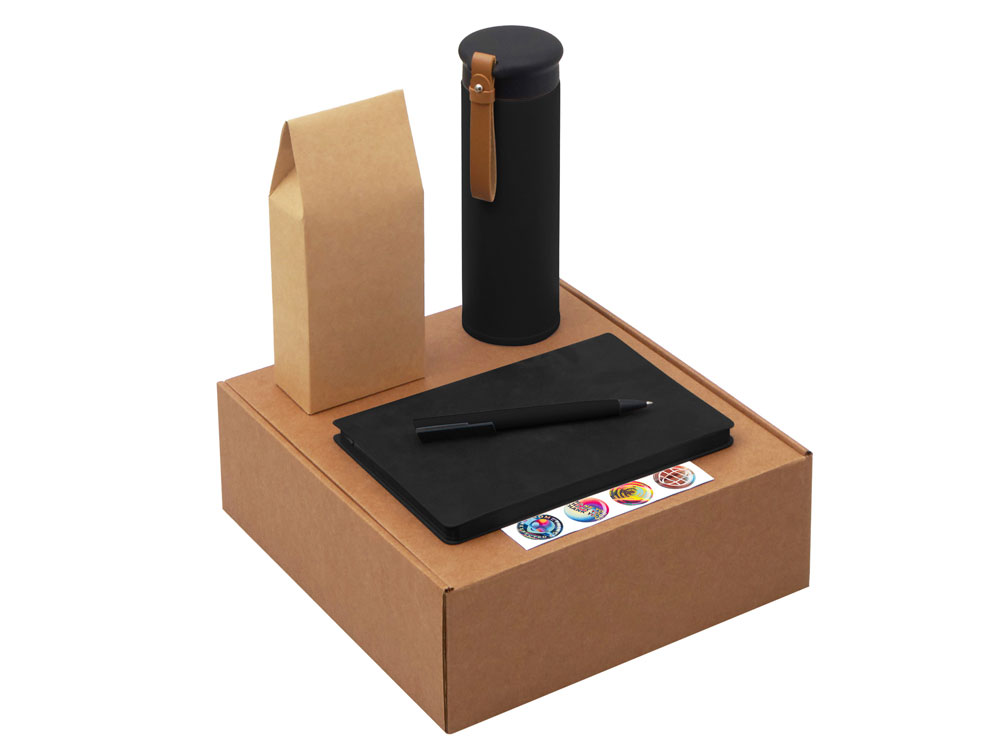 Функциональный и сбалансированный набор для сотрудников, партнёров или клиентов — отлично подойдёт для welcome-боксов, тимбилдингов, внутренних мероприятий и корпоративных праздников. Состав набора: • Блокнот — удобный формат для записей, брифов и ежедневных задач • Ручка — классическая, с необычным слайдером и приятной soft-touch поверхностью делает письмо более комфортным. • Термос из долговечной нержавеющей стали с двойными стенками, вакуумная изоляция между которыми помогает сохранять температуру напитков в течение долгого времени. Термос идеально подходит для заваривания чая: специально для этого в комплекте идет металлическое ситечко с ручкой, которое не пропустит ни одной чаинки. • Классический чёрный байховый чай поможет взбодриться и освежить мысли, поэтому его можно пить утром для лёгкого пробуждения или днём — чтобы восстановить силы и сосредоточиться. Вечером он станет приятным завершением дня в сочетании с десертом или лёгкими закусками. • Набор стикеров — для ярких акцентов и персонализации вещей; • Универсальный ложемент обеспечивает аккуратное размещение и надёжную фиксацию элементов, делая набор эффектным и презентабельным при вручении. • Дополнительное преимущество — набор доступен в конструкторе наборов: компоненты можно заменить и собрать индивидуальный вариант под стиль компании или вкусы получателя. • Готовое решение для корпоративных подарков • Все элементы функциональны и актуальны для повседневного использования