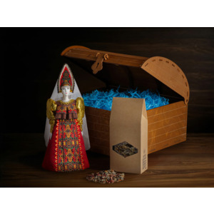 Подарочный набор с фарфоровой куклой и ароматным чаем. Гармония русских традиций, уюта и изысканного вкуса воплотилась в этом изысканном подарке. Набор станет прекрасным презентом для близких, деловых партнеров или иностранных гостей, желающих прикоснуться к русской культуре. Комплектация: - Фарфоровая кукла в народном костюме ручной работы: алый сарафан с пышными рукавами и расшитый кокошник создают образ русской красавицы в праздничном наряде. - Фруктовый чай "Малина с мятой" (70 г) с нежным ягодным вкусом и освежающим мятным послевкусием. Идеальное дополнение для душевных посиделок. - Стильное оформление: синяя декоративная стружка подчеркивает благородство подарка и надежно фиксирует его содержимое. Особенности упаковки: Деревянный сундучок с замочком превращает набор в драгоценный ларец. Возможность нанесения именной таблички добавляет презенту индивидуальности, делая его по-настоящему памятным подарком.