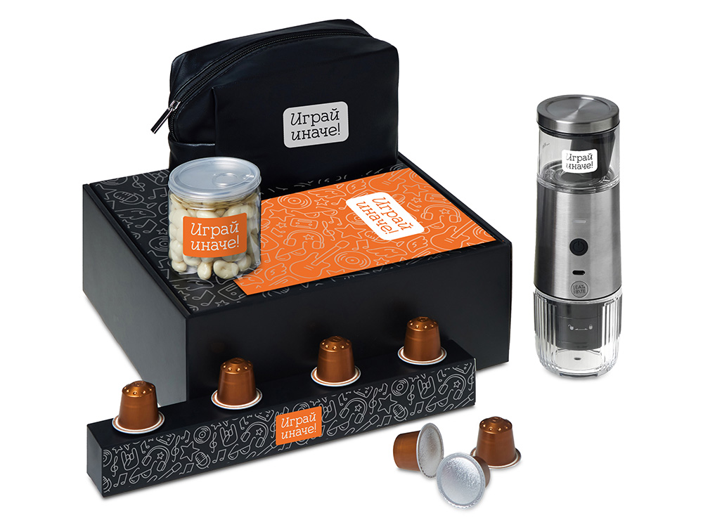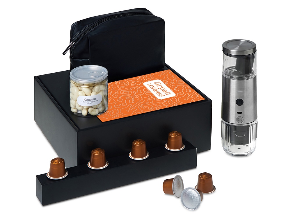 Наборы серии Re: напоминают: важнее всего человек, а не его роль. Они дарят возможность замедлиться и насладиться настоящим. Каждый набор — как мини-ритуал: согреться, почувствовать себя, поблагодарить и восстановиться после дней, полных скорости, дедлайнов и шума. Re:y. — Универсальные наборы для осознанного отдыха, которые помогут отстраниться от информационного шума, замедлиться и подарить себе время на настоящую жизнь и личные моменты счастья. Набор "Re:y. Boost" о бодрости, энергии и маленьких ритуалах, которые можно взять с собой. Портативная кофемашина и кофе в капсулах позволяют приготовить ароматный напиток дома, в офисе или на прогулке. Кешью в глазури добавляет сладкую нотку, а косметичка позволяет взять любимые вещи с собой, куда бы вы ни отправились.. Этот набор превращает привычный утренний ритуал в момент бодрости и комфорта, где бы вы ни были.