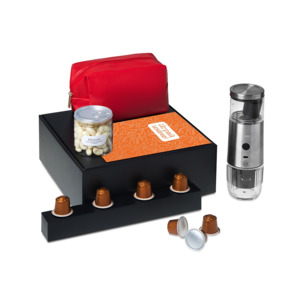 Подарочный набор «Re:y. Boost» с кофемашиной, капсулами и косметичкой