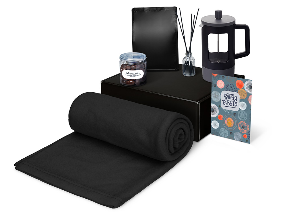 - Материал товара - плед - флис, полиэстер, кофе - пластик, френч-пресс - нержавеющая сталь, боросиликатное стекло, ПП пластик, диффузор - стекло, миндаль - пластик, мешок - нетканый материал (спанбонд), коробка - картон