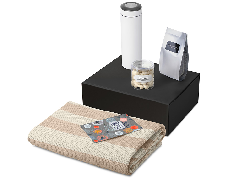 - Материал товара - плед - 100% хлопок, термос - нержаваеющая сталь с покрытием soft-touch, чай - пластик, мешок - нетканый материал (спанбонд), коробка - картон