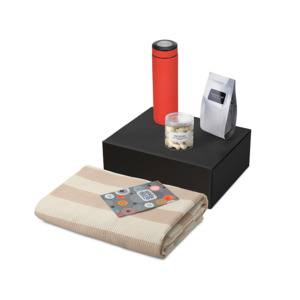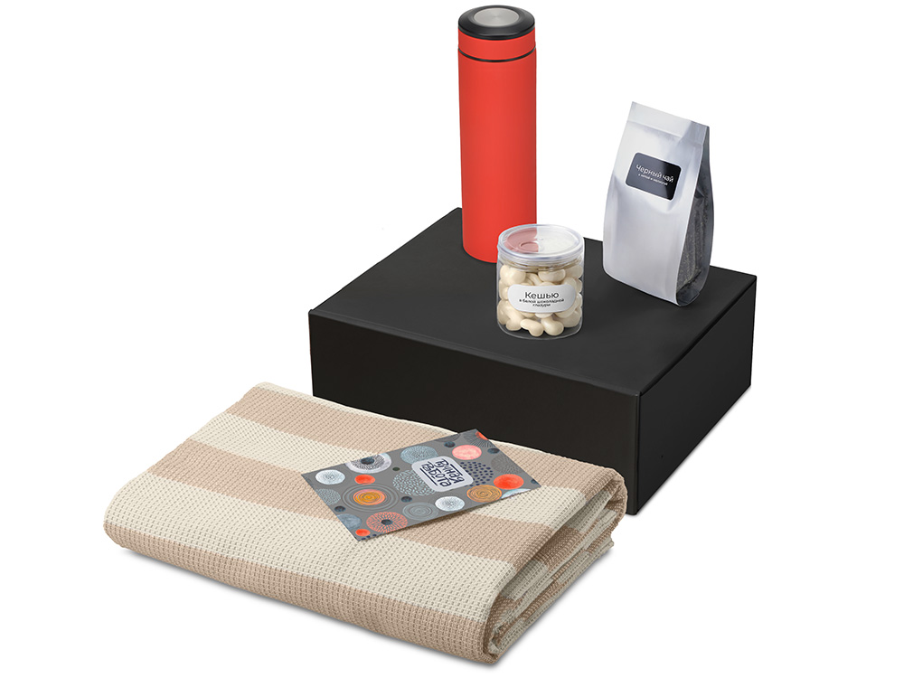 - Материал товара - плед - 100% хлопок, термос - нержаваеющая сталь с покрытием soft-touch, чай - пластик, мешок - нетканый материал (спанбонд), коробка - картон