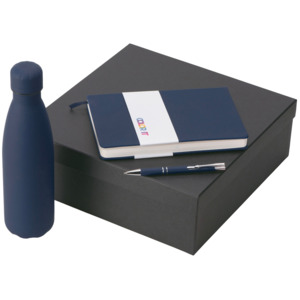 - Материал товара - блокнот - искусственная кожа с покрытием soft-touch, ручка - алюминий с покрытием soft-touch, термобутылка - нержавеющая cталь с покрытием soft-touch, коробка - картон