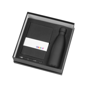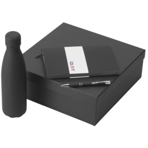 Подарочный набор с блокнотом С1, металлической ручкой и термобутылкой, черный