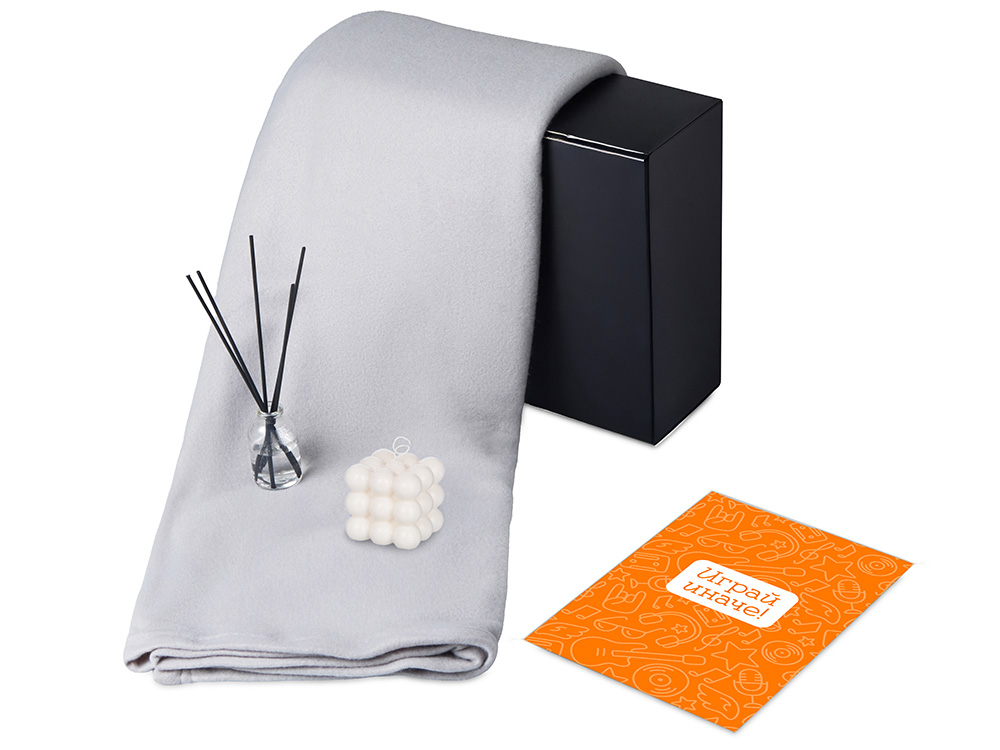 Подарочный набор с пледом, свечой и диффузором, серый