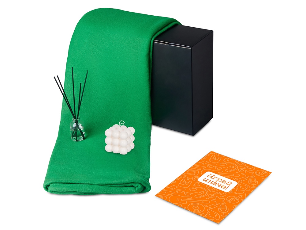 Подарочный набор с пледом, свечой и диффузором, зеленый