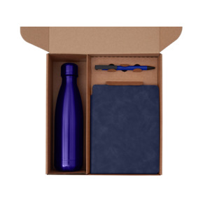 Подарочный набор с термобутылкой, блокнотом, ручкой и чаем, синий
