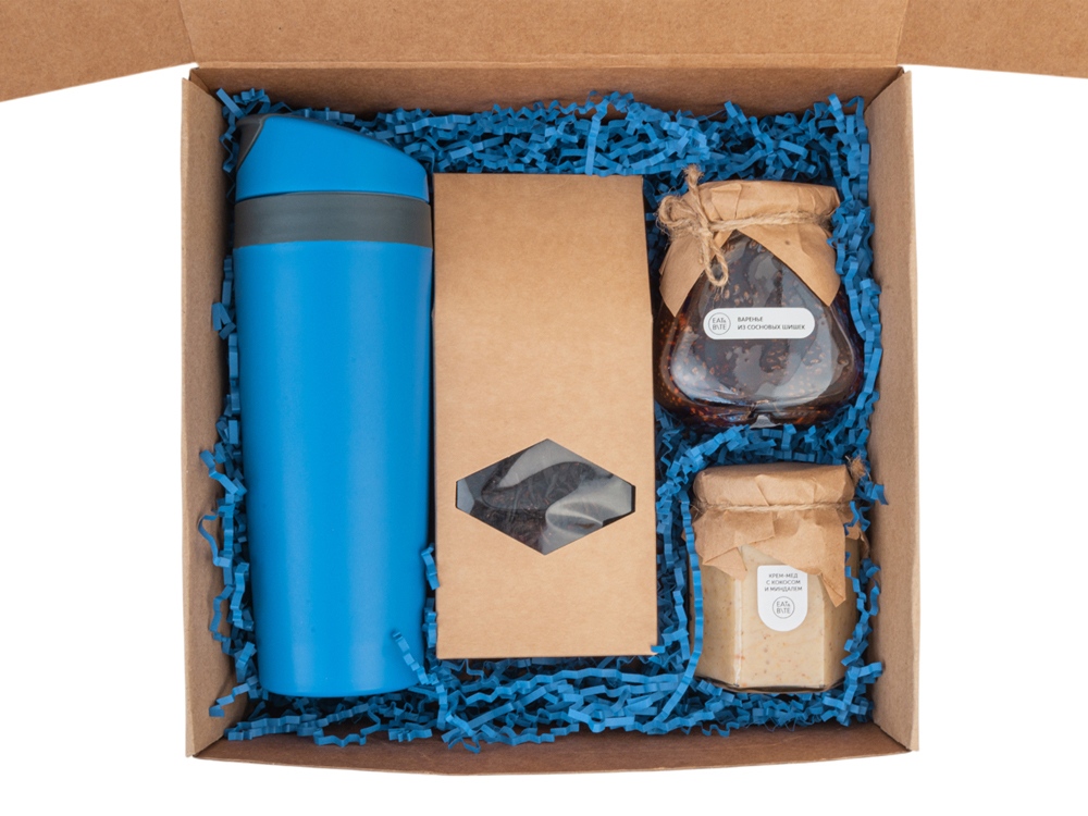 - Материал товара - коробка - картон, банка - стекло, термокружка - полипропилен