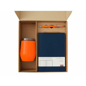 - Материал товара - ежедневник - искусственная кожа, термокружка - нержавеющая сталь снаружи, полипропилен внутри, ручка - металл c покрытием soft-touch, ситечко - нержавеющая cталь