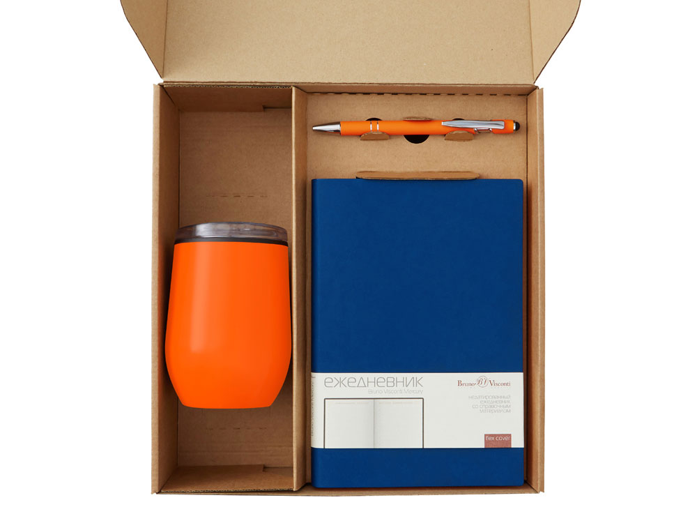 - Материал товара - ежедневник - искусственная кожа, термокружка - нержавеющая сталь снаружи, полипропилен внутри, ручка - металл c покрытием софт-тач, ситечко - нержавеющая cталь
