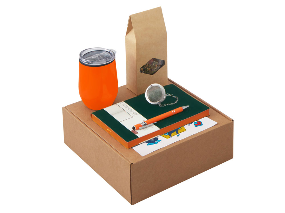 Набор "Writea" станет отличным подарком для сотрудников, клиентов и партнёров, подчеркнёт внимание к их комфорту и заботу о деталях. Он уместен как корпоративный подарок на праздники, юбилеи и деловые мероприятия, так и в качестве welcome-набора для новых коллег. Набор объединяет всё необходимое для комфортного рабочего дня: Ежедневник для идей, заметок и составления рабочих планов на день. В ежедневнике есть полезная справочная информация; Ручка, которая всегда под рукой; Практичная термокружка «Pot» отлично подойдет для использования как дома, так и в офисе, сохраняет тепло до 3-х часов; Ситечко для заваривания — незаменимая вещь для любителей чая. Оно помогает сохранить истинный вкус и аромат напитка, позволяя наслаждаться настоящим листовым чаем без лишних хлопот. Компактное и удобное, ситечко подходит для дома, работы, путешествий или отдыха на природе; Чай «Малина с мятой» - идеально подходит для вечернего расслабления после насыщенного дня; Набор стикеров — для ярких акцентов и персонализации вещей; Универсальный ложемент обеспечивает аккуратное размещение и надёжную фиксацию элементов, делая набор эффектным и презентабельным при вручении. Дополнительное преимущество — набор доступен в конструкторе наборов: компоненты можно заменить и собрать индивидуальный вариант под стиль компании или вкусы получателя.