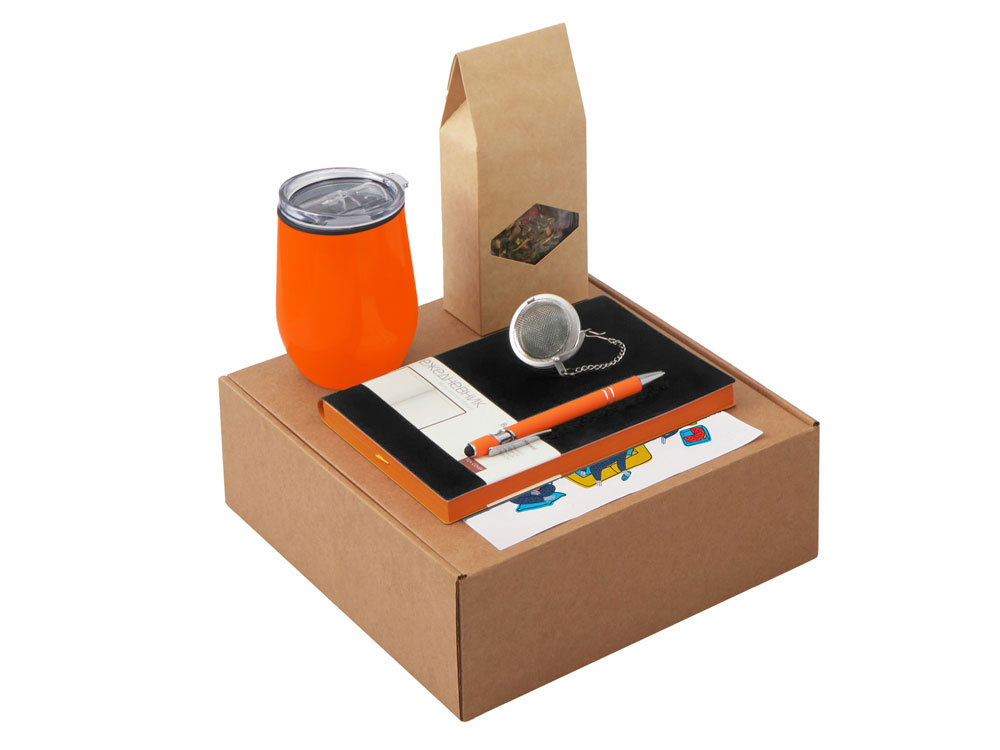 Набор "Writea" станет отличным подарком для сотрудников, клиентов и партнёров, подчеркнёт внимание к их комфорту и заботу о деталях. Он уместен как корпоративный подарок на праздники, юбилеи и деловые мероприятия, так и в качестве welcome-набора для новых коллег. Набор объединяет всё необходимое для комфортного рабочего дня: Ежедневник для идей, заметок и составления рабочих планов на день. В ежедневнике есть полезная справочная информация; Ручка, которая всегда под рукой; Практичная термокружка «Pot» отлично подойдет для использования как дома, так и в офисе, сохраняет тепло до 3-х часов; Ситечко для заваривания — незаменимая вещь для любителей чая. Оно помогает сохранить истинный вкус и аромат напитка, позволяя наслаждаться настоящим листовым чаем без лишних хлопот. Компактное и удобное, ситечко подходит для дома, работы, путешествий или отдыха на природе; Чай «Малина с мятой» - идеально подходит для вечернего расслабления после насыщенного дня; Набор стикеров — для ярких акцентов и персонализации вещей; Универсальный ложемент обеспечивает аккуратное размещение и надёжную фиксацию элементов, делая набор эффектным и презентабельным при вручении. Дополнительное преимущество — набор доступен в конструкторе наборов: компоненты можно заменить и собрать индивидуальный вариант под стиль компании или вкусы получателя.