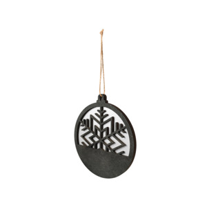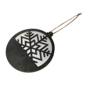 Стильная и минималистичная подвеска в форме снежинки выполнена из натуральной березовой фанеры. Сочетание черного и серебристого оттенков создаёт ощущение зимнего холода и утончённой простоты. Идеально подходит для украшения интерьера, ёлки или упаковки подарка. Такой сувенир подчеркнёт внимание к деталям и станет оригинальным акцентом в корпоративном или праздничном наборе.