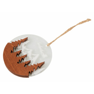 Элегантная подвеска, выполненная из сочетания прозрачного акрила и натуральной березовой фанеры. Комбинация материалов придаёт изделию лёгкость и современный дизайн, а натуральная текстура фанеры добавляет теплоту и уют. Идеальна для украшения ёлки, подарочной упаковки или интерьера. Такой сувенир станет стильным корпоративным подарком или праздничным акцентом, подчёркивая внимание к деталям и современный вкус.