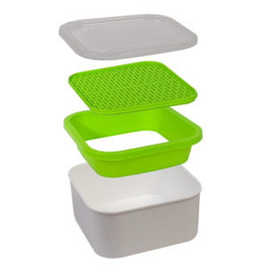 Микрозелень – молодые растения в фазе пары первых листьев, содержащие максимальную концентрацию полезных веществ. Растет на чистой воде за счет использования внутренних ресурсов семян. Комплектация набора: - крышка, - корзинка, - сменное дно (установленное в позицию для проращивания микрозелени), - емкость для жидкости. Проращиватель подходит как для крупных семян, так и для самых мелких. Для выращивания микрозелени установите сменное дно широкими бороздами вверх. Для проростков - широкими бороздами вниз. Как вырастить микрозелень: