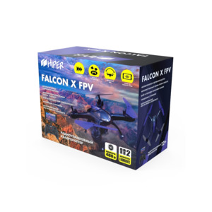 Квадрокоптер HIPER FALCON X FPV – имеет корпус фиолетово-черного цвета, подвесную FPV видеокамеру 480P, квадрокоптер идеально подходит начинающим пилотам для совершенствования навыков управления. Для стабилизации в воздухе квадрокоптер оснащён гироскопом, а встроенный барометрический датчик помогает удерживать текущую высоту. Испытайте свободу полёта от первого лица, установив приложение для IOS и Android. Прямо с планшета или смартфона вы сможете управлять полётом и контролировать фото-видео съёмку. Либо просто закрепите свой смартфон в качестве экрана на пульте ДУ и наблюдайте трансляцию камеры по WiFi. FALCON X FPV оснащён двумя аккумуляторами Li-po 3.7В / 380 мАч, одного АКБ хватает на 6 минут полета! Одной кнопкой на пульте управления вы сможете поднять дрон в воздух и посадить его на землю. Легко освоив пилотирование, вы оцените три скорости полёта, возврат одной кнопкой, кульбиты на 360 градусов и световые эффекты. Значительно облегчит управление режим Headless, при котором не важно, куда нацелена передняя часть квадрокоптера, он полетит по вашей команде в заданном направлении. Особенности: • В комплекте 2 аккумулятора! • Барометрический датчик контроля высоты полета • 6-и осевая система стабилизации • Подвесная FPV видеокамера 480Р / 0,3 Мп с трансляцией изображения по WiFi • Управление с телефона / WiFi • Снимает фото и видео по команде с пульта • Интуитивный режим управления «Headless» • Три переключаемых режима скорости • Взлет и посадка нажатием одной кнопки • Возврат одной кнопкой • Кульбиты на 360 градусов • Стабильный сигнал 2.4 Ггц Технические характеристики: Радиус действия: до 60 метров Длина квадрокоптера – 38,5 см Ширина квадрокоптера – 38,5 см Аккумулятор : LiPo 3.7В / 380 мАч Вес квадрокоптера : 91г (без камеры) Время полета: ~ 6 мин Время зарядки: ~ 60 мин Рекомендуется докупить: 3 батарейки АА Беспилотный летательный аппарат (квадрокоптер, самолет на РУ) весом от 150 гр до 30 кг, после его приобретения, в течение 10 дней необходимо зарегистрировать в порядке, установленном законом (Например, бесплатная заявка через «Госуслуги»). Согласно постановлению Правительства от 25.05.2019 № 658 (в ред. Постановления Правительства РФ от 19.03.2022 N 415), учету подлежат беспилотные гражданские воздушные суда массой от 150 грамм до 30 килограмм. Согласно этим изменениям, теперь дроны со взлётной массой до 30 кг разрешено запускать на высоте до 150 метров от земли или воды в пределах прямой видимости от оператора и в светлое время суток без согласования. Пожалуйста, всегда проверяйте актуальные законы вашего региона перед использованием квадрокоптера.