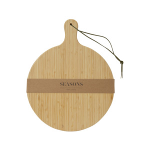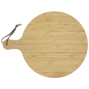 Разделочная доска Delys изготовлена из бамбука и идеально подходит для частных лиц и предприятий, которые предпочитают более экологичные товары. Диаметр доски: 30,5 см. Длина ручки: 8 см. Толщина доски: 1,4 см. Не подходит для микроволновой печи или посудомоечной машины.