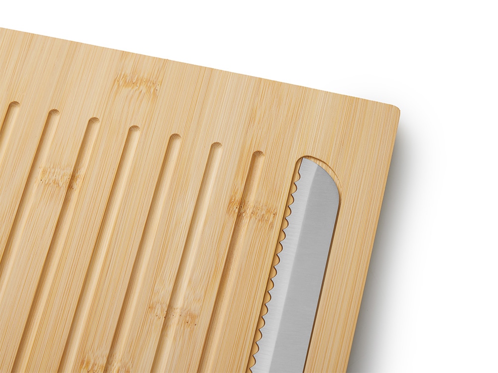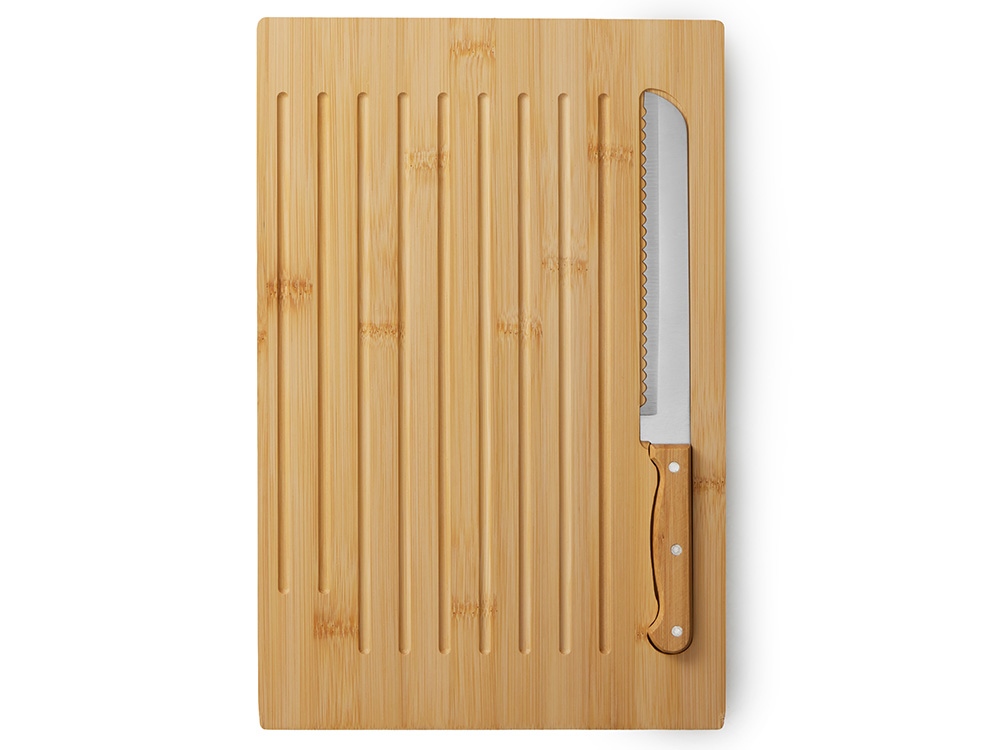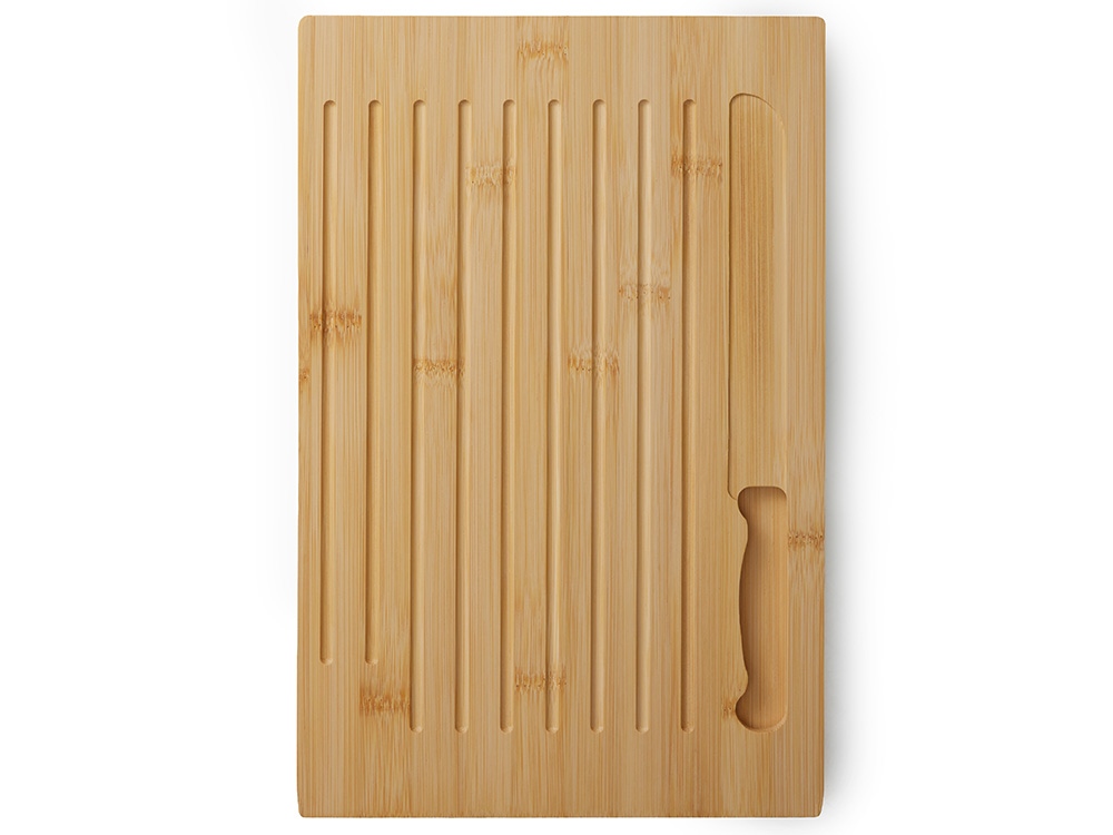 Доска «Круста» с хлебным ножом — идеальный дуэт для нарезки хлеба. На поверхности доски предусмотрены специальные выемки для сбора крошек, что делает нарезку удобнее, сохраняя поверхность вокруг идеально чистой. Нож удобно хранится прямо в доске: для него вырезано аккуратное посадочное место, чтобы инструмент был всегда под рукой. В углу доски предусмотрена специальная зона для нанесения логотипа — это делает набор идеальным корпоративным подарком. Бамбук — легкий, прочный и экологичный материал, который не впитывает запахи. Не рекомендуется использовать в посудомоечной машине. После мытья рекомендуем протирать деревянную поверхность насухо.